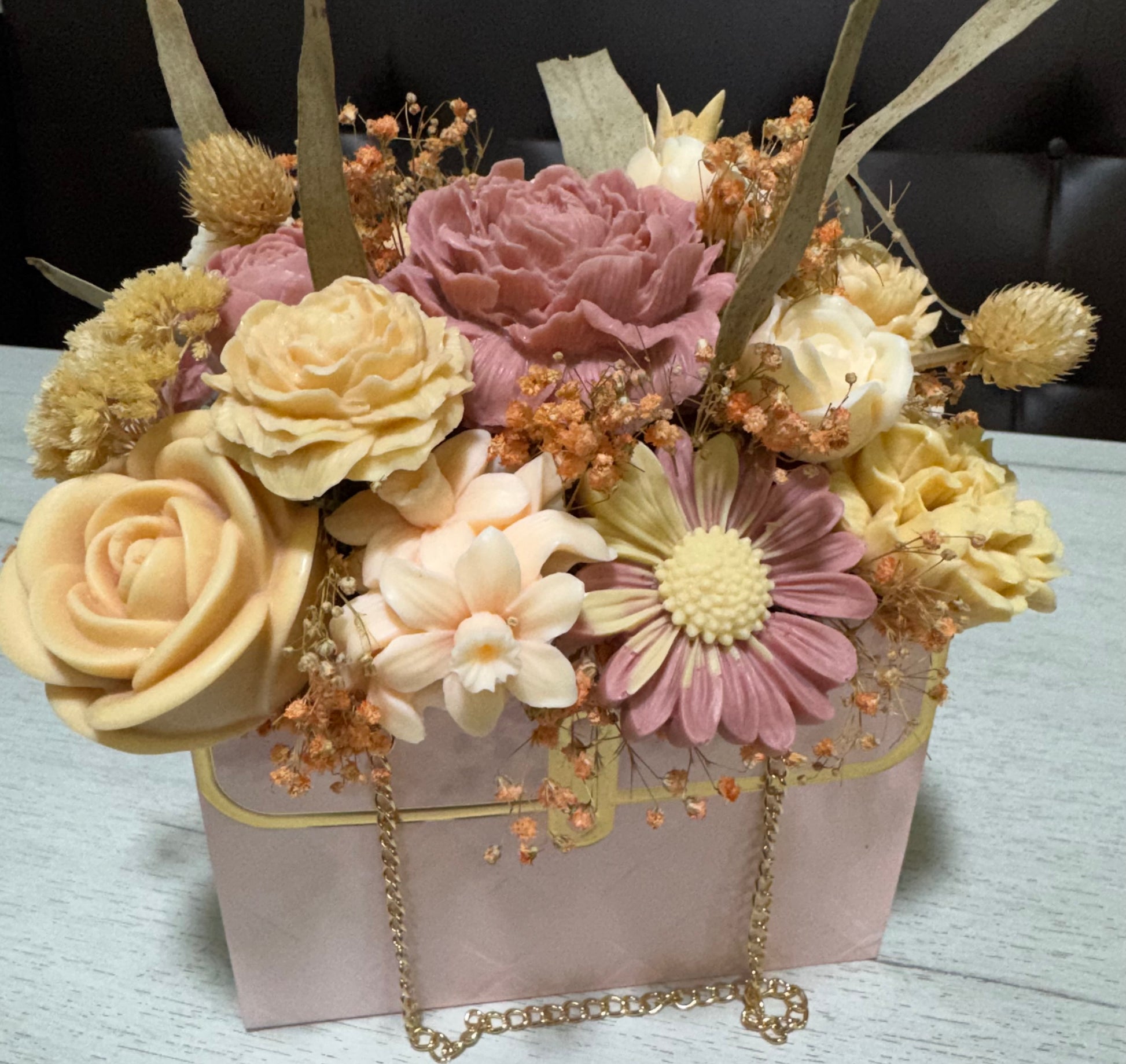 La Colección Encantos Florales reúne nuestros bouquets más delicados de flores de jabón artesanales, hechos a mano con amor y detalle.